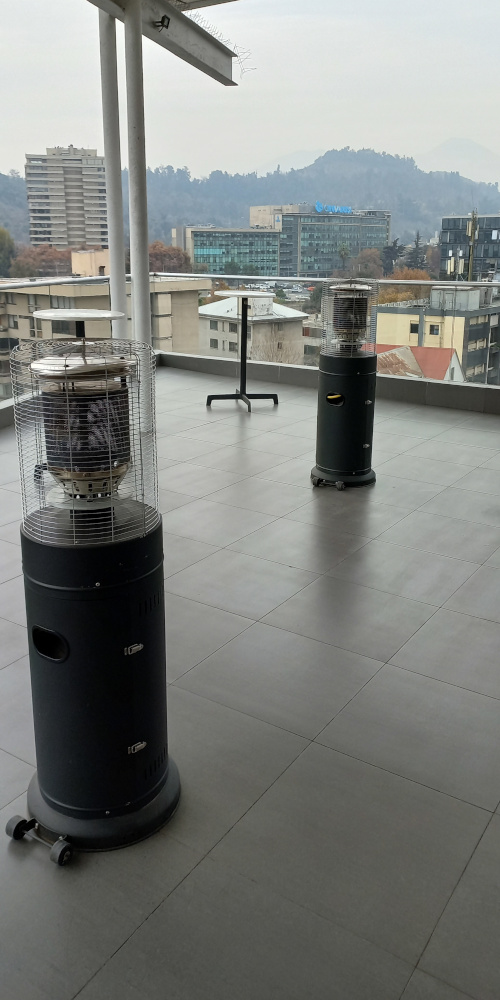 Perfecta para terrazas con cielo bajo, pérgolas o quinchos donde las estufas grandes no caben por su altura.